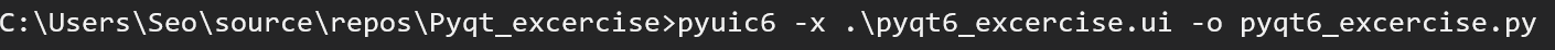예제 : pyuic6 -x .\pyqt6_excercise.ui -o pyqt6_excercise.py