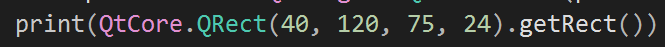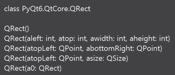 라인2 : 그러면 self.pushButton instance 클래스내 setGeometry 메써드를 호출 할 것인데 argument에는 QtCore모듈의 QRect class의 parameter를 확인해보니 aleft, atop, awidth, aheight 인 것으로보니