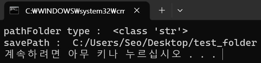 코드를 실행하면 파일을 선택 할 수 있고 저는 test_folder폴더를 선택하였고 아래와 같이 경로를 받아오는 것을 볼 수 있습니다.